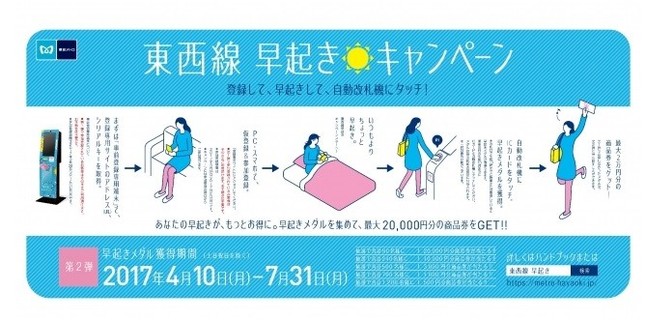 東京メトロは、「東西線早起きキャンペーン」第2弾を2017年4月10日から7月31日まで実施する。