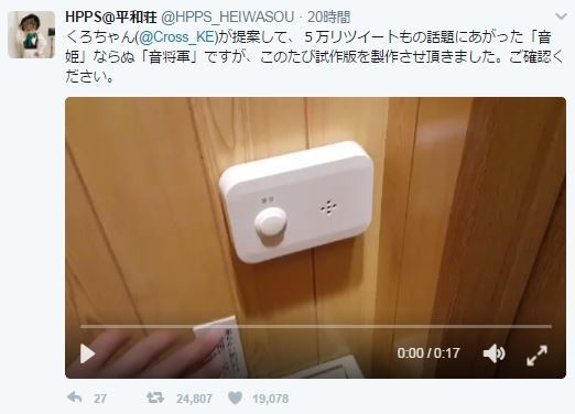 くろちゃん(@Cross_KE)が提案して、5万リツイートもの話題にあがった「音姫」ならぬ「音将軍」ですが、このたび試作版を製作させ頂きました。ご確認ください。 pic.twitter.com/it7JCQyeJC
