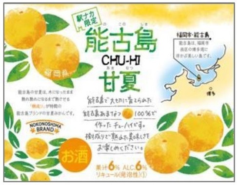 JR西日本福岡支社は、福岡市西区の能古島の「甘夏」を使用した「能古島甘夏CHU-HI」を2017年5月16日に発売した。
