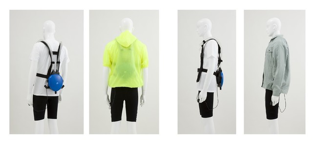 「ZERO HEAT」は、Tシャツや下着の上からショルダーベルトとウエストベルトで装着し、さらにその上からジャンパーや作業着の上着を着用して使用する。電源のスイッチを入れた瞬間から、冷風が上着の中を循環して速効冷却。付属チューブで局所冷却も可能だ。