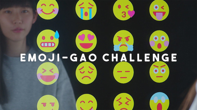 Web動画では、画面左に絵文字、右に本人の表情がそれぞれ映し出される。果たしてどれくらいのギャップがあるのか。気になる続きは「EMOJI-GAO CHALLENGE」をチェックしよう。動画の最後に、自分の表情をチェックできる仕掛けも用意されている。