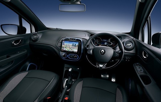 今作はルノー キャプチャー インテンスをベースとし、専用のボディカラー「ブランナクレM(メタリック)+ノワールエトワールM」で身を包んでいる。また、ブルーフィニッシャー付ブラックドアモールや、エアコンパネルブルーイルミネーション、ブルーレイ対応高画質9インチ大画面SDナビゲーションシステム、前席シートヒーター付専用ブラックレザー×ファブリックシート、さらに、専用エンブレムデカールなどを装備した。
