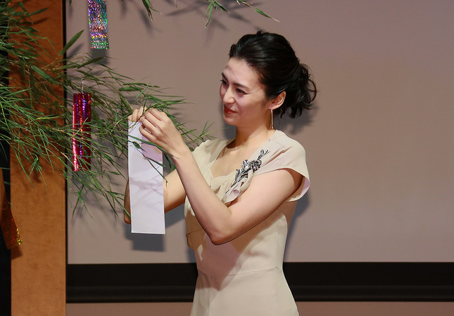 この日はCMの放送開始日が七夕にあたることから、会場内に七夕の笹飾りが用意され、柴咲さんは短冊に「柴咲農園を作る!!」としたためた。その理由について次のように答えた。