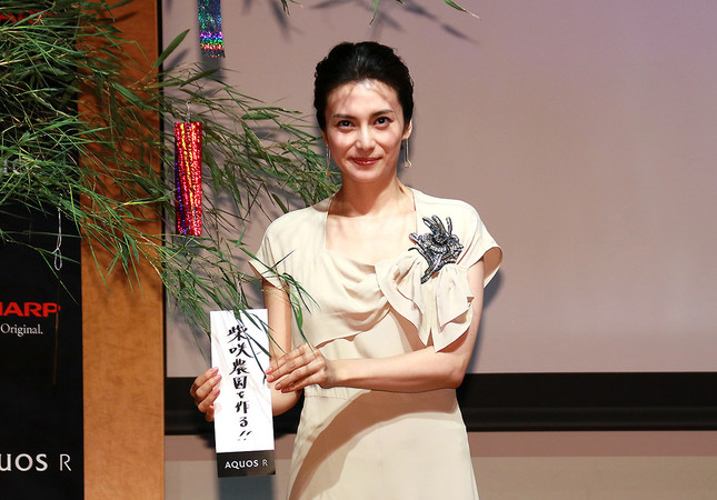 シャープは2017年7月7日、スマートフォンのフラグシップモデル「AQUOS R」を大手3キャリアから一斉発売する。7月4日に東京都内で発表会が行われ、新CMキャラクターに就任した女優の柴咲コウさん(35)が出席した。