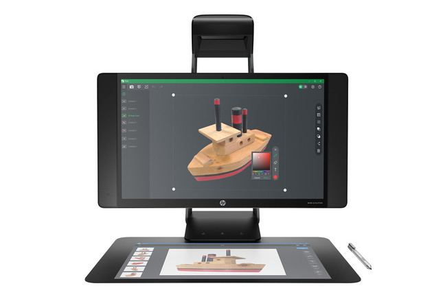ディスプレイ上部に高解像度カメラを装備し、手書きの資料やデザイン画などを簡単にデータ化できる。また3Dスキャン機能を備え、対象物を手に持ちながらの簡易スキャンに対応した「Camera 3D」、回転台「Sprout by HP 3Dキャプチャステージ」を利用して高精細なキャプチャーが可能な「HP 3D Scan Software Pro」、2種類のソフトウェアを用意する。