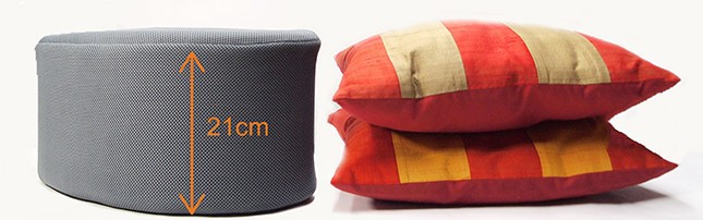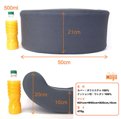 素材は、中のクッション材がウレタン100%、カバーがポリエステル100%。クッションはほどよい硬さがあり、上から圧迫しても沈まないように出来ている。普通の座布団やクッションでは得がたい機能だ。しかも通気性に優れた素材なので蒸れにくい。