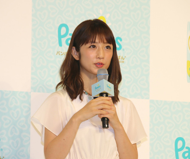 2児の母でもあるタレント、小倉優子さん(33)が2017年8月2日、日用消費財メーカー「P&G」(神戸市)が都内で開いたイベントで「おむつピタゴラ」や「おむつ作り」を体験した。