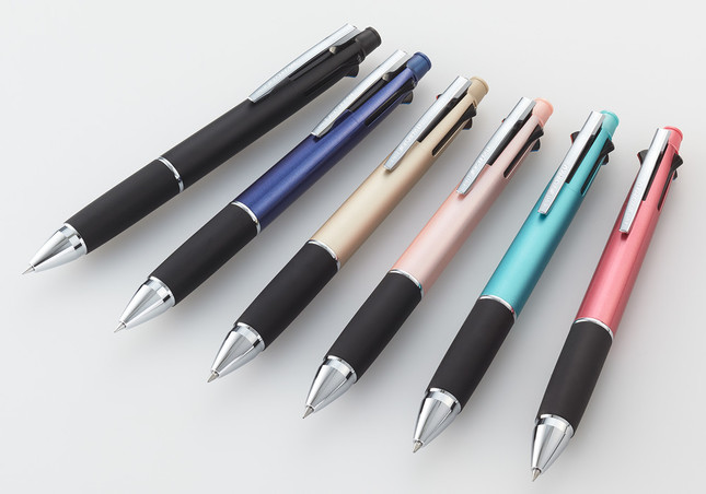 ボールペンとシャープペンが1本にまとまっており、ペンケースを持ち歩かない社会人にもおすすめだ。軸色は定番のブラック、ネイビーと、華やかなシャンパンゴールド、ベビーピンク、ミントグリーン、ベリーピンクの全6色をラインアップ。