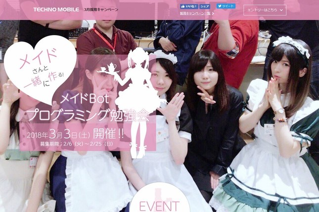 「メイド」と一緒にプログラミングを学び、運が良ければIT企業の内定を獲得――。こんなイベントを企画したのは、システム開発を手がけるテクノモバイル(東京都港区)だ。