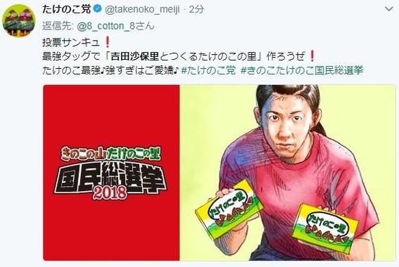 明治は2018年2月26日~7月31日の期間、「きのこの山・たけのこの里 国民総選挙2018」を実施する。