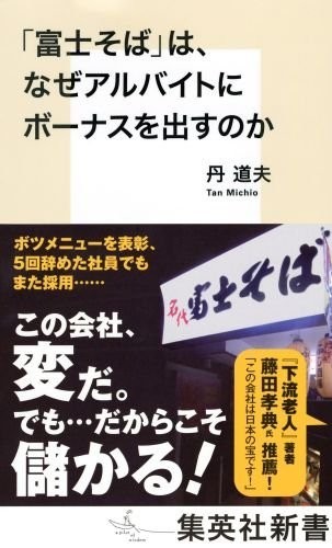 『「富士そば」は、なぜアルバイトにボーナスを出すのか』(著・丹道夫、集英社、799円)は、創業者の丹道夫さんが自ら経営哲学を明らかにしたものだ。名古屋に生まれ愛媛県西条市で育ち、苦労の末に130店舗以上を展開する立ち食いそばチェーンを築き上げた。