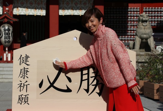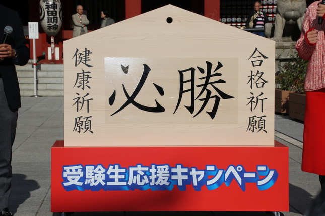 「インフルエンザ対策で受験生応援!」イベント期間中は、巨大な絵馬に「必勝」と書かれた「合格祈願モニュメント」が神田明神に置かれる。「必」の1画目にあたる「点」の部分が拭き取れる仕掛けだ。つまり「点が取れる」との意味で、受験生にとって縁起がよく、合格祈願ができる。