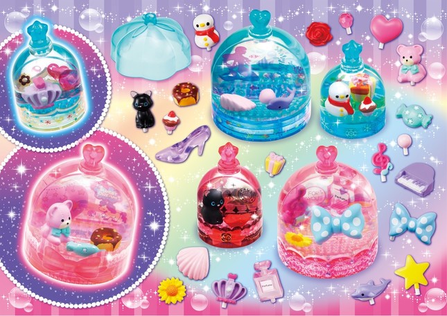 ドームを振ったりデコキャップを回すことでラメが雪のように舞い、アクアドームの世界観をより一層引き立てられるという。デコシールやラインシールに透明の"パステルカラー"を採用。ドームは大(高さ75ミリ)と小(同60ミリ)2サイズの計4個が付属し、組み直しも可能だ。