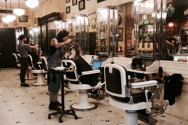 バーバーチェアやキャビネットをはじめとしたヴィンテージの店内装飾品は、すべて米国から輸入。また、2018年にオープンした代官山店同様、ロバート・デ・ニーロやデビット・ベッカムなどを顧客に持つマイスタースタイリストのラッセル・マンリーに師事。マイスターの認定を受けたスタイリストが迎えてくれる。