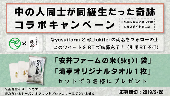 2月20日、滝亭がプレゼントキャンペーンについて説明したツイートにある通り、両アカウントの担当者は小・中学校生活を共に送った同級生。そのため例えば、「攻めている」と感じさせるコラボも可能になる。顕著だったのが、エイプリルフールだ。