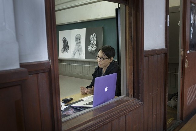 京都市内の廃校になった小学校。作品展の会場となった築88年の校舎の中で、芸術家のBae Sang-Sun(ベ・サンスン=裵相順)は、そう解説する。