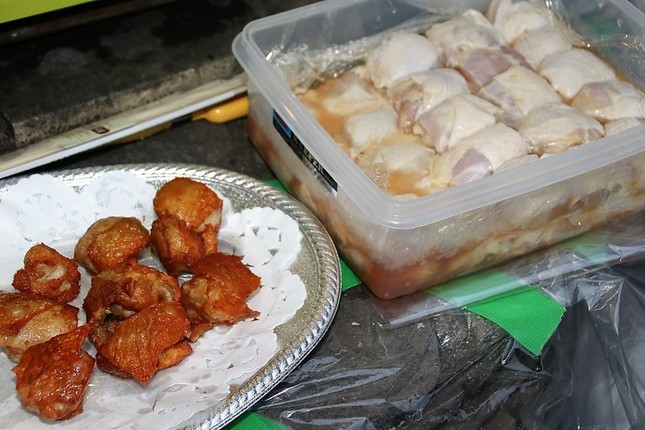 これらの調理器具を使い、ドン・キホーテ担当者が次々と「Donkiステーキ」を焼き上げ、こてっちゃん担当者はOisix担当者が洗って切った野菜と業務用パックの「こてっちゃん」を炒める。みたけ食品担当者は岩谷産業のカセットガスたこ焼器「炎タコ」で「ラヂオ焼き」を作り、居酒屋チェーン大手のつぼ八担当者は仕込んできたザンギを揚げる――。会場各所からジュージュー、カラカラとさまざまな音が聞こえ、香ばしい匂いが漂った。