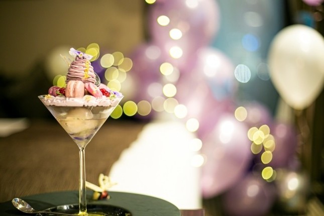 ストリングスホテル名古屋(名古屋市)は、「大人のご褒美パフェ~すみれ&ベリー~付 すみれ色デコレーションルーム」を、2019年9月1日まで販売している。