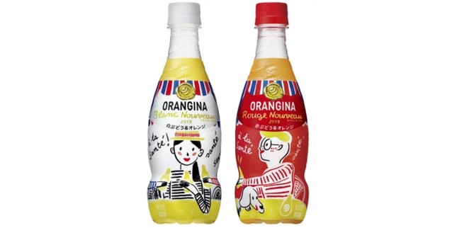 商品名はいずれも2019年に収穫したブドウの果汁を使っていることから、フランス語で「新しい」を意味する「ヌーヴォー」を共通して入れた。白ブドウ果汁使用のオランジーナにはフランス語で「白」を意味する「ブラン」が、赤ブドウ果汁使用のオランジーナには「赤」を意味する「ルージュ」がそれぞれ用いられている。