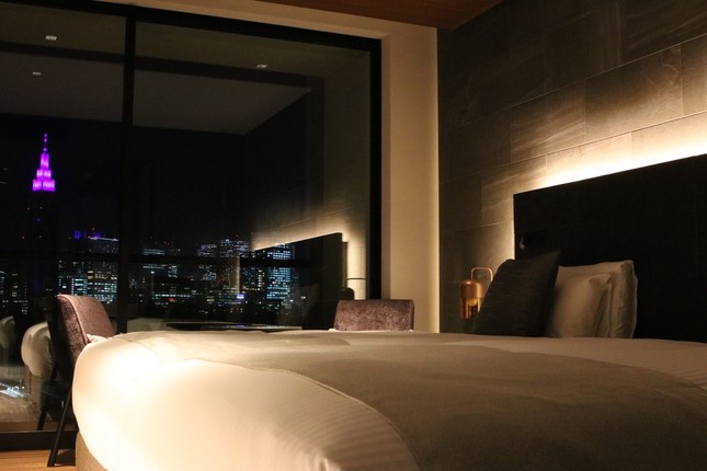 J-CASTトレンドは、オープン前の11月12日夜にホテルを取材した。記者が泊まったのは9階西側にあるツインルームだ。新国立競技場は見えないが、カーテンを開けて驚く。窓越しに超高層ビルが林立する新宿の夜景が目に入り、その迫力に思わず息をのんだ。バルコニーに出ると、新宿のビル群に向けて走るJR中央線の電車や首都高速道路を行く車を見下ろすこともできる。まるで都心を独り占めしている気分になった。