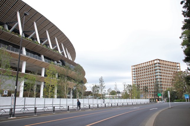 外装は、木を取り入れた建築が特徴の新国立競技場に合わせ、素材に木材を使った格子状のデザインを採用した。全ての部屋にバルコニーがついていて、部屋の向きによって新国立競技場や明治神宮外苑、新宿御苑など異なる眺望が楽しめるのが特色だ。