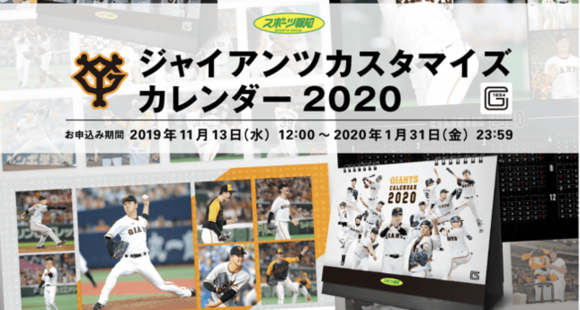 報知新聞社(東京都港区)は、「ジャイアンツカスタマイズカレンダー2020」を19年11月13日~20年1月31日の期間限定で発売する。