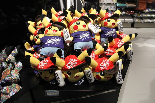 ニンテンドートウキョウと隣接するポケットモンスターの公式ショップ「ポケモンセンターシブヤ」は、IT企業が多い渋谷の街にちなみ「テクノロジー」をイメージしたシックな内装だ。ここでは、壁に落書きをする「グラフィティーアーティスト」姿のピカチュウや、自らの身体にグラフィティーアートをまとったカラフルなピカチュウのグッズが買える。