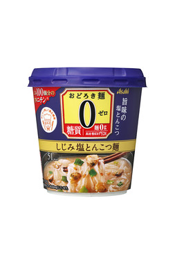 アサヒグループ食品は、ワンカップスープ「おどろき麺0(ゼロ)しじみ塩とんこつ麺」を、2019年12月2日に発売する。寒天とコンニャクからなる糖質ゼロの麺を使用。プルプルとした食感の麺に、しじみの旨みがきいた塩とんこつスープと、具材のしじみ、ねぎが絡む。1食でしじみ100個分のオルニチン(44ミリグラム)が摂取可能だ。糖質5.2グラム、51キロカロリー。パッケージには、一般社団法人食・楽・健康協会の「ロカボ」マークが付いている。