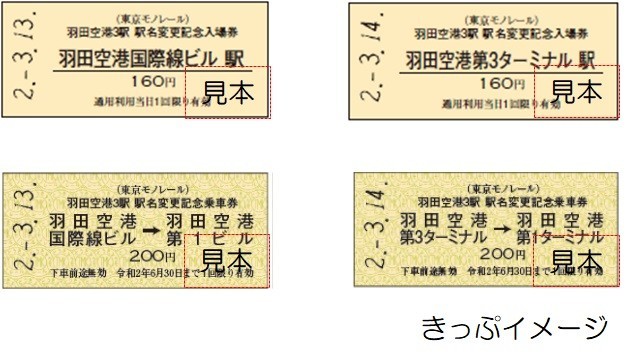 東京モノレール(東京都港区)は、「羽田空港3駅駅名変更記念入場券・乗車券セット」を2020年3月13日~3月31日23時59分まで販売する。