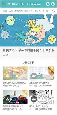 「日興フロッギー+docomo」は最低「100円/ポイント」から投資が可能。東証に上場している企業や上場投資信託(ETF)などの約3700銘柄を100万円まで手数料ゼロ円で購入できる。また、更新される記事を読むとdポイントを3ポイント付与される特典があり、SMBC日興証券は「学びながらdポイントを貯める」、「貯まったdポイントで投資をする」というサイクルを提案していきたいとしている。