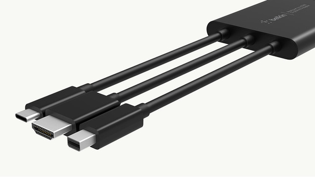 USB Type-C、HDMI、Mini DisplayPortの3つの入力端子を備え、各入力からHDMI端子を備えたプロジェクターやディスプレーへの出力が可能だ。会議室での使用や自宅でのテレワークなど、それぞれ用する端末が異なる場合でもインターフェースに困らず作業が行える。