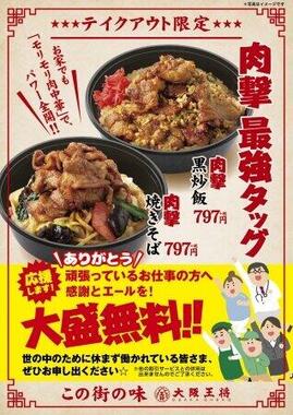 イートアンド(東京都品川区)は、餃子専門店「大阪王将」で「肉撃黒炒飯」と「肉撃焼きそば」を、2020年5月22日からにテイクアウト・期間限定で販売。