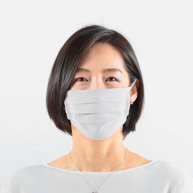 MSK-8には、プリーツが入っており、マスクが上下に広がり顔にしっかりフィットする。たての中央部分が最大横幅と同じ長さにまで広がるため、鼻からあごまでをカバーできる。ホワイト、サックス、グレージュ、ミント、ピンク、ネイビーの6色展開で、価格は1セット2枚入りで1600円(同)。