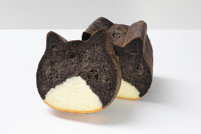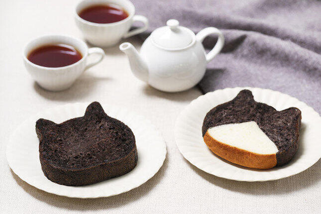 「ねこねこ食パン マル」は「マル」のビジュアルを再現。ブラックココア生地にチョコチップを合わせた。