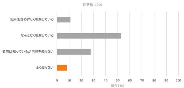 まず、「『Go To Eatキャンペーン』がどんなキャンペーンか知っていますか?」という質問。「なんとなく理解している」(53%)と「活⽤法含め詳しく理解している」(11%)を合わせると、「理解している」は64%になった。