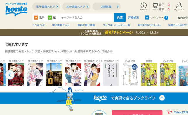 「honto」は、リアル書店とネット書店を連携させたハイブリッド型総合書店として2012年5月にサービスを開始。電子書籍ストア・本の通販ストアと、リアル書店(丸善、ジュンク堂書店、文教堂、啓林堂書店など)を共通の会員プラットフォームで連携させている。コロナ禍で、電子書籍の購入と、紙の本の通販購入を併用するユーザも大幅に伸びているという。リアル書店・ネット書店のどこで購入しても共通の「hontoポイント」が貯まるなどの特徴がある。インターネット経由の新規会員は約2倍になっているという。