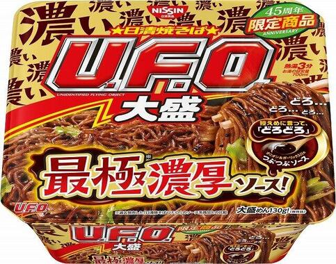 「日清焼そばU.F.O.」の発売45周年限定品として、シリーズの特長であるソースの"濃さ" にとことんこだわった。