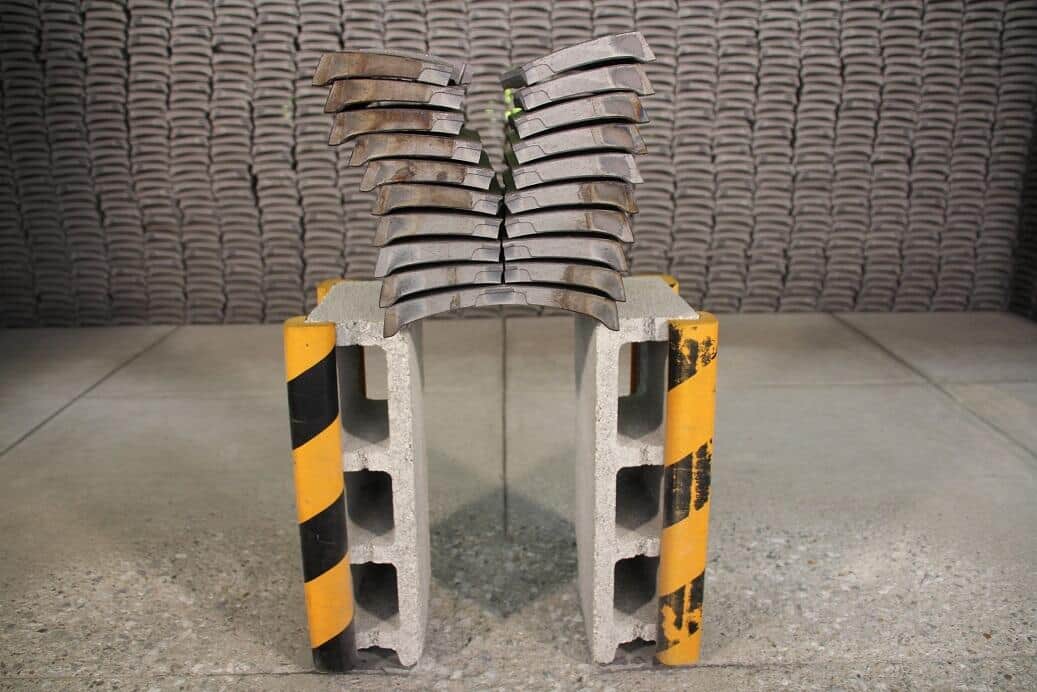 川口さん「もう一つ、瓦の枚数が増えて高さが増すと、打点もその分高くなります。割る人の身長と瓦との距離感の問題ですね。割るときに力が入りにくい、膝を曲げるタイミングを合わせるのが難しい枚数は、人によって違います」