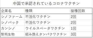 世界保健機関(WHO)が緊急使用を承認している中国製ワクチンは、中国医薬集団(シノファーム)と科興控股生物技術(シノバック・バイオテック)の2社。いずれも、ウイルスを加工し毒性をなくした不活化ワクチンだ。