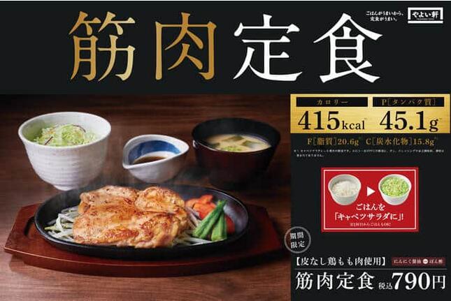 プレナス(東京都中央区)が運営する定食レストラン「やよい軒」は、「筋肉定食」3種を2021年9月17日に発売した。