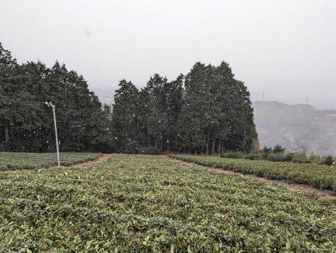 しかし撮影は怠らなかった。雪がちらつく茶畑を収めた一枚だ。
