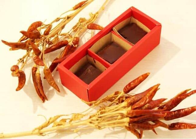 1箱に3粒入っており、激辛生チョコレートはそのうちの1粒のみ。どれが激辛かわからない、ロシアンルーレットのような楽しみ方も出来る。