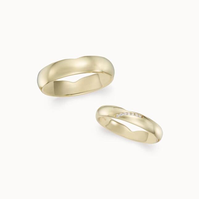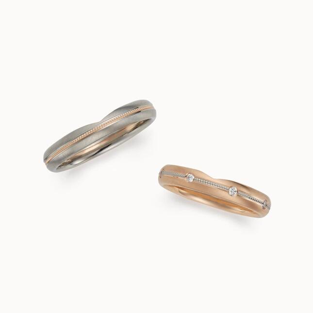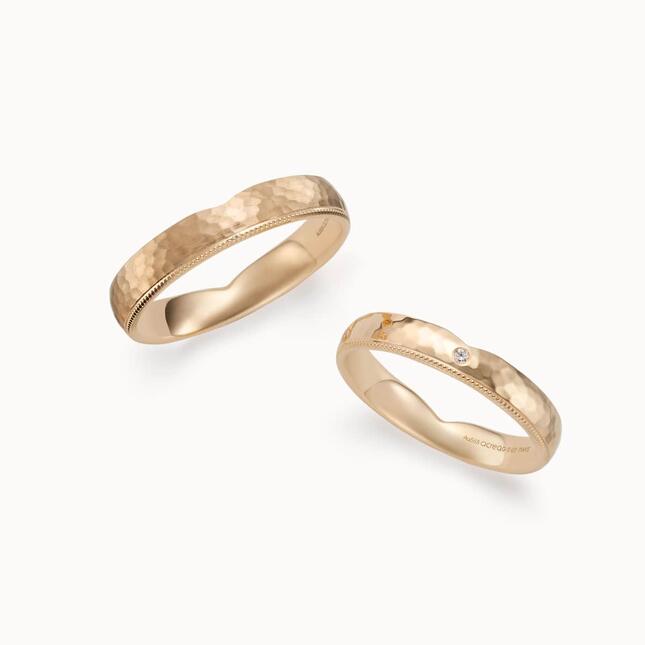 コレクションには、4つのモデルがラインアップしている。いずれもメンズとレディースを用意。メインのハートが見えるデザインはそのままに、加工や地金の違いから、それぞれに異なった魅力と印象になっている。レディースリングにはダイヤがあしらわれていた。