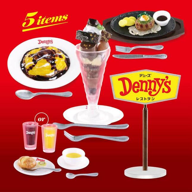 「デニーズ」から正式な許諾を得て、料理やデザートなどの人気メニューを中心にミニチュアフィギュア化した全5種をラインアップする。