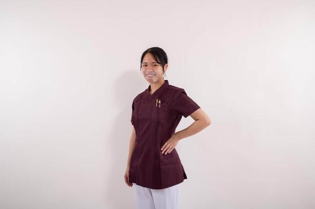 〈とにかく着心地がいいんです。夜勤の日は仮眠の時間もあるので、ちょっと大きめのスクラブを着て、パジャマっぽい感じにしたりしています〉