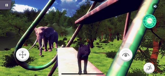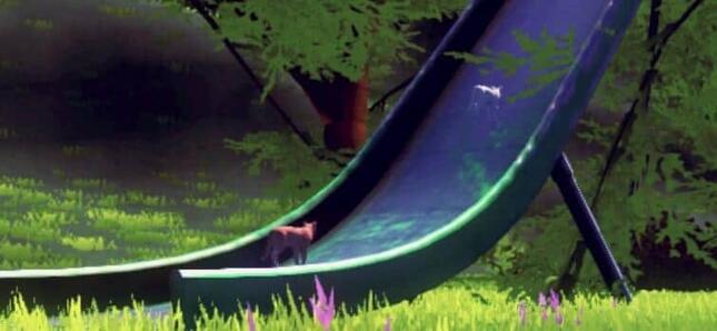 見渡すと、巨大な滑り台やシーソーといった遊具が用意されている。ほかにはNPC(プレイヤーがいないキャラクター)とおぼしき巨大なゾウとブタとヒツジがいた。いずれの動物も、その場で首を左右に振っているかと思いきや、急にその場に倒れこみ、そして起き上がる。以降も同じような動作を繰り返し続ける。
