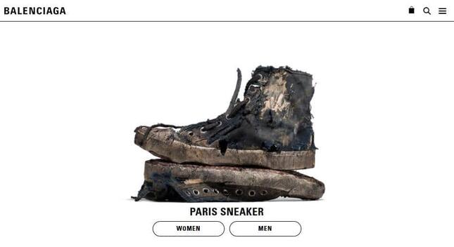 今回登場した「パリ スニーカー」は、「ユーズド加工」、つまり一見中古のように見える加工が特徴的だ。しかし、サイトトップに掲載された靴の画像は、その加工があまりに行き過ぎているために話題になっている。