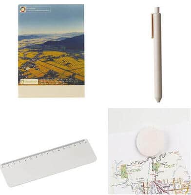 A4クリアファイルやボールペン、定規、マグネットを展開。