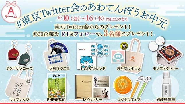 東京都所在の企業公式アカウントが所属する「東京Twitter会」が2022年6月10日から6月16日まで、ツイッター上で合同プレゼントキャンペーンを実施している。
