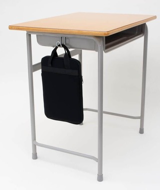 縫製強度を考慮したダブル持ち手のタテ型タイプで、ランドセルからの出し入れがしやすく、小学生が扱う際の丈夫さにも気を配った。名前欄付き。リーズナブルな価格ながら学校現場のニーズに応え、耐久性・耐水性に特化した高機能な作りになっている。